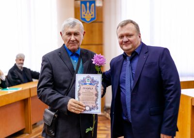 Перед початком офіційної частини засідання ректор Українського державного хіміко-технологічного університету К. М. Сухий звернувся до членів вченої ради та всіх запрошених зі словами привітання з професійним святом – Днем працівників освіти України та провів урочисту церемонію нагородження співробітників Подяками голови Соборної районної у місті Дніпро ради, Почесними грамотами Університету з нагоди святкування Дня працівників освіти України.