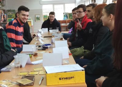 5 лютого 2024 року, незважаючи на зимові канікули, група студентів зібралася в Арт-просторі УДХТУ, щоб взяти участь у захоплюючій дискусійній грі “Бункер”. Ця атмосферна гра дає можливість кожному гравцеві приміряти на себе роль унікального персонажа, який бореться за виживання та відновлення планети.