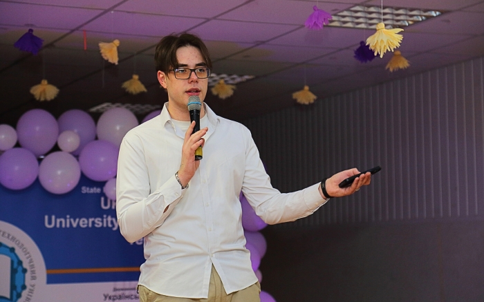 Гарний настрій присутнім подарував і гумористичний стендап від студента групи 4-ЦБ-52 Віктора Куроєдова, який дотепно й тепло розповів про жіночу чарівність та силу.