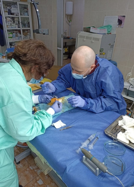 12-15 травня 2025 року науковець взяв участь у проведенні хірургічних втручань на лабораторних тваринах у Харкові. Метою цього етапу було оцінити токсичність, біосумісність і здатність до регенерації розроблених матеріалів. Усі експерименти виконано відповідно до протоколу та з дотриманням етичних норм.