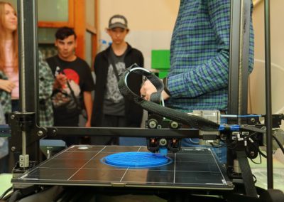 У лабораторії 3D-друку та енергоефективності учні знайомилися з інноваційним обладнанням, експериментували з техніками та слухали пояснення завідувача кафедри енергетики, доцента Станіслава Ковальова. Деякі технології справді нагадували сцени з фільмів про майбутнє.