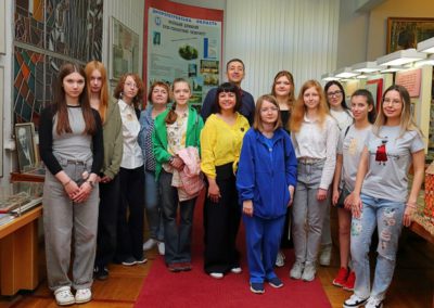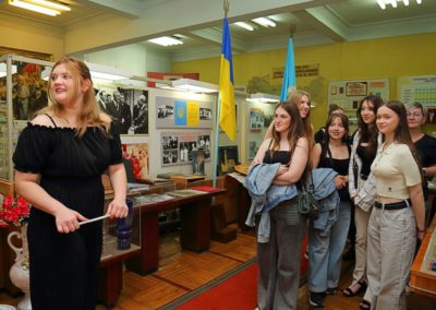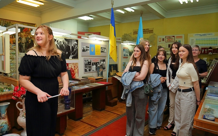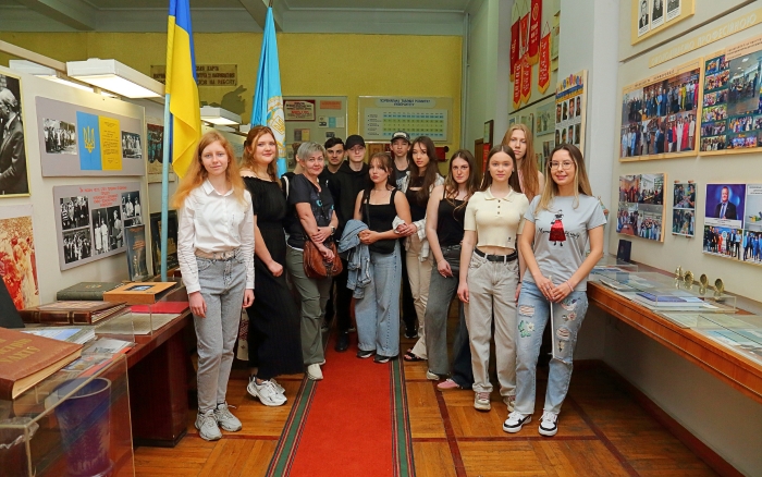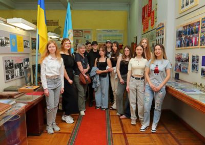 Першою локацією для гостей став Музей історії УДХТУ. Емоційні розповіді студентів-екскурсоводів під керівництвом Марини Демидко відкрили школярам історію нашого університету, яка розпочалась ще 95 років тому. Вони дізналися про людей, що стояли біля витоків університету, про його внесок у розвиток хімічної промисловості України та про студентів і випускників, які першими стали на захист нашої держави.