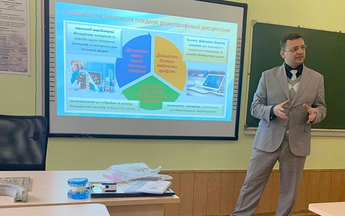 At the Spassky Lyceum of the Pidhorodna City Council, associate professors of the Department of Chemical Technologies of Ceramics, Glass and Biomedical Materials Yaroslava Koltsova and Alexei Sigunov, together with the representative of the admissions committee, associate professor of the Department of Fuel, Polymer and Printing Materials Technologies Katerina Roenko, told the students about the educational opportunities of the university. The teachers explained in detail the features of the 2025 admission campaign, in particular the nuances of a wide competition and ways to enter on a budget. During the meeting, an agreement on cooperation between the lyceum and the university was also signed.