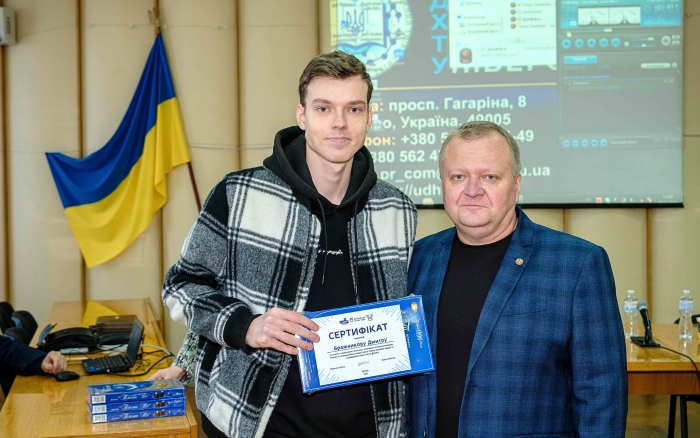 Separate congratulations were extended to the students of the SEI USUCT Daria Lyubarska, Zabava Cherniy, Elizaveta Chelak, Dmitry Brazhnikov, Pavlo Prokuda and Maxim Feni, who were awarded certificates of the Dnipro City Council for participation in the annual city sports and intellectual tournament in non-traditional sports among higher and pre-higher education institutions of the city of Dnipro.