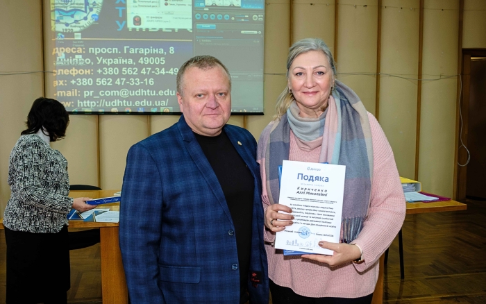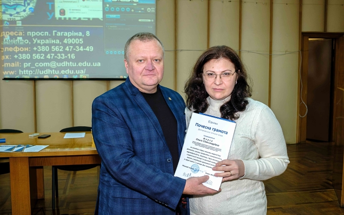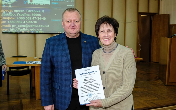 The gratitude of the Mayor of Dnipro Borys Filatov and Honorary certificates of the Dnipro City Council for conscientious fruitful scientific and pedagogical activity, high professional competence, responsibility, initiative, worthy education of student youth and significant personal contribution to the implementation of state policy in the field of education were received by: