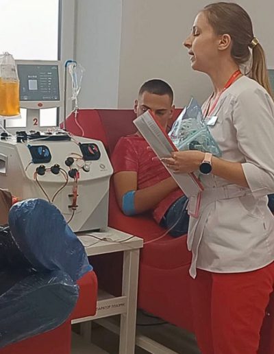 During the visit, the students got acquainted with plasmapheresis technologies and the operation of high-precision medical equipment that ensures a safe process of donor plasma procurement. They saw how knowledge of biomechanics, electronics, sensors, materials science and automation is combined in real conditions.