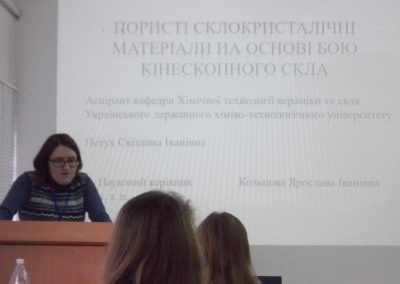 Postgraduate student of the CTCG Department Petukh S.I. for the report “Porous glass-crystalline materials using the kinescope broken glass” was awarded the diploma for the 1st place in the section “Chemical Engineering”.