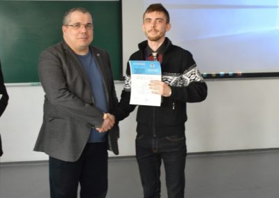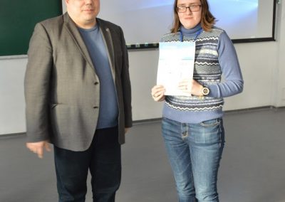 Postgraduate student of TOSFP Department Smetanin M.V. for the report “Synthesis and study of antibacterial activity of functionalized derivatives of N-aryl hydrazone-7-oxoheptane and indolyl-butyric acids” was awarded the diploma for the 3d place in the section “Organic chemistry”.
