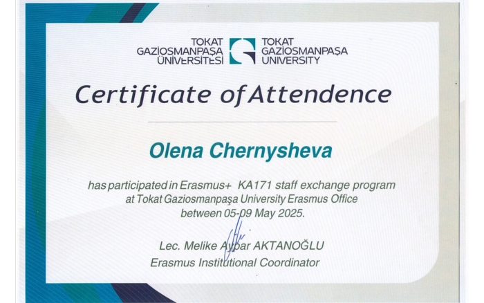 On May 5-9, 2025, a visit was made by employees of the Faculty of Economics, Humanities and Law of the National Research Institute of the State Technical University of Ukraine UDUNT – Head of the Department of Marketing and Logistics, Candidate of Economics, Associate Professor Olga KUCHKOVA and Associate Professor of the Department of Management and Finance, Candidate of Economics, Associate Professor Elena CHERNYSHEVIA – to Tokat Gaziosmanpaşa University (Republic of Turkey) to participate in the Erasmus+ International Credit Mobility international teacher exchange program.