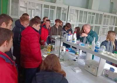 Students of Dnipro Lyceum No. 36 visited the institute. This time they worked in the laboratories of the Department of Technologies of Natural and Synthetic Polymers, Fats and Food Products, where they tried themselves as researchers. The topic of the lesson was “Determination of Food Quality Indicators”.