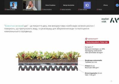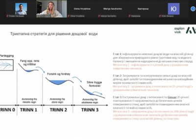 The lecture on the management of rain “waste” water was both theoretical and practical and contained specific examples of building design from the speaker’s own experience. Evelina talked about the strategy and approaches in the management of rainwater in Norway, cited specific measures aimed at solving or significantly reducing the problem of inundation during floods, which are currently being implemented in Norway, considered software that allows you to take into account the issue of rainwater drainage and significantly facilitate the design of buildings .