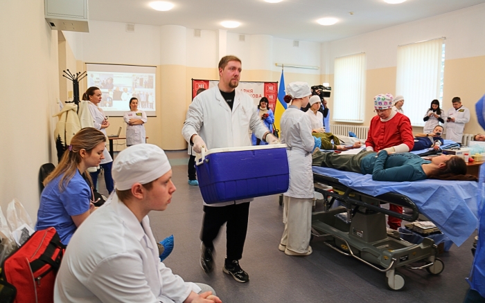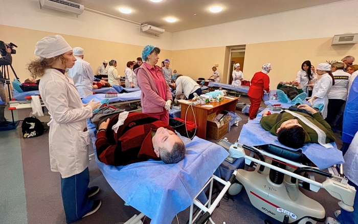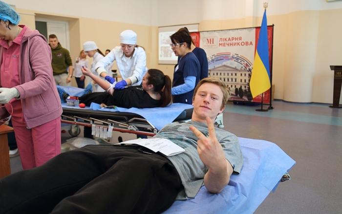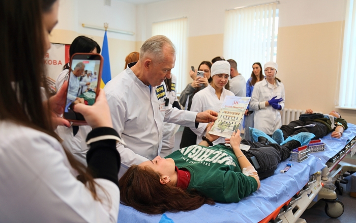 In the donor hall, the participants were met by the hospital’s doctors and the general director of the institution, Doctor of Medical Sciences, Professor Sergiy Ryzhenko, who emphasized the extreme importance of donated blood for saving the wounded in intensive care units. University representatives also thanked the doctors for their daily selfless work in war conditions.