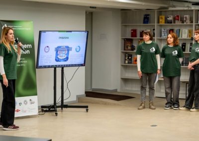 Teachers Valeria Pavlova, Olga Kogteva and Yulia Minina carried out tasks from the companies DOW and LLC “VKF MBA” ELF DECOR and presented an innovative project for creating a biocomposite from plant waste, aimed at the development of environmental technologies.