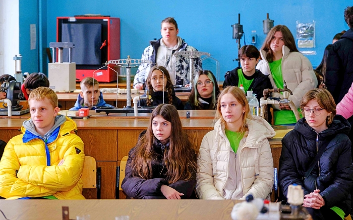 The Ukrainian State University of Science and Technology has joined the implementation of the educational and educational project “Green – ED. Green Education of the Dnipro”, the purpose of which is to popularize environmental awareness and sustainable development among young people. As part of the initiative, on April 10, 2025, the educational and scientific institute “Ukrainian State University of Chemical Technology” organized a number of events for schoolchildren, including a bright chemical show, thematic scientific locations, interactive master classes and demonstrations of experiments. The event brought together more than 100 schoolchildren from 8 lyceums in the city of Dnipro, who enthusiastically watched the spectacular experiments that demonstrated the basics of chemistry through bright reactions, color changes and smoke effects.
