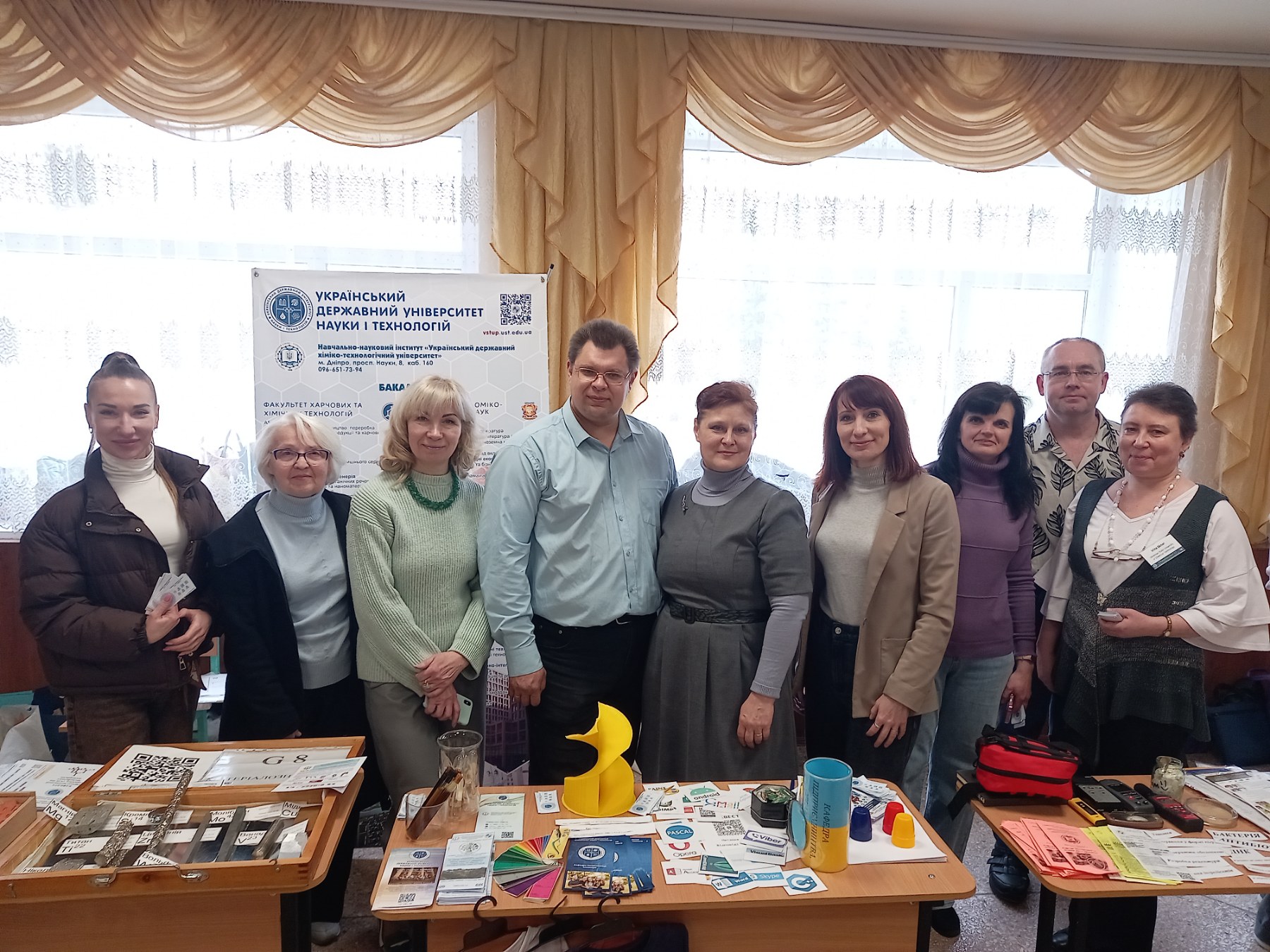 | У Дніпровському ліцеї № 142 імені П’єра де Кубертена Дніпровської міської ради 2-го квітня 2026 р. Український державний університет науки і технологій організував заходи з професійної орієнтації для школярів. | 18 березня 2026 р. відбулися профорієнтаційні заходи серед учнів у приміщенні Ліцею № 137, м. Дніпро. Фахівцем 1-ї категорії Судовською Л.О. проведено пояснювальну роботу, здійснені відповіді на питання, що стосуються вступу до ННІ «Український державний хіміко-технологічний університет» УДУНТ. Потенційні абітурієнти прийняли участь у цікавому квесті з теми «Матеріали у житті людини». |