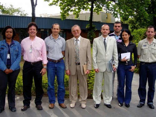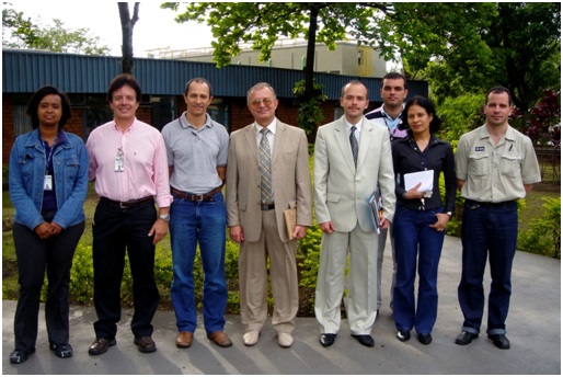 Пошук шляхів комерціалізації розроблених технологій в Компанії Сідерургіка Насьонал (Волта Редонда, Бразилія) з керівником центральних лабораторій доктором Х. Мелло (другий ліворуч)
