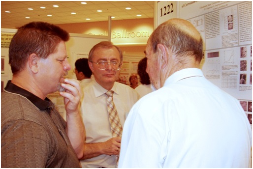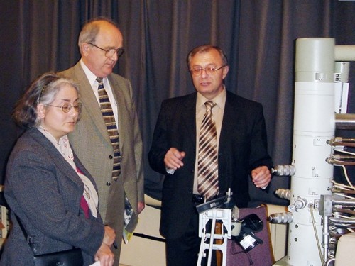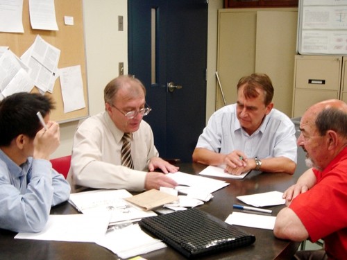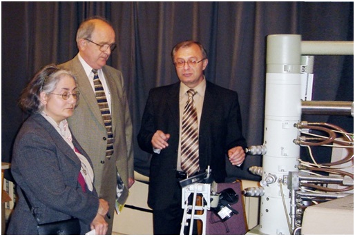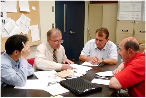 Обговорення результатів сумісних досліджень в департаменті матеріалознавства та обробки матеріалів Університету МакГілла (Монреаль, Канада) з керівником департаменту професором Є. Шпунаром (другий праворуч)