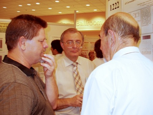 Дискусія професора О. Б. Гіріна з доктором Б. МакКвіном (США) (ліворуч) на 206 Міжнародному науковому симпозіумі ECS у Гонолулу (США)