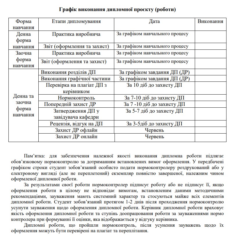 Графік виконання дипломної роботи