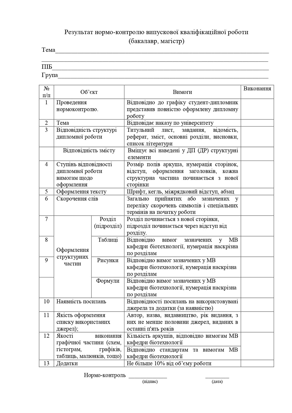 Вимоги до нормо-контролю випускової атестаційної роботи