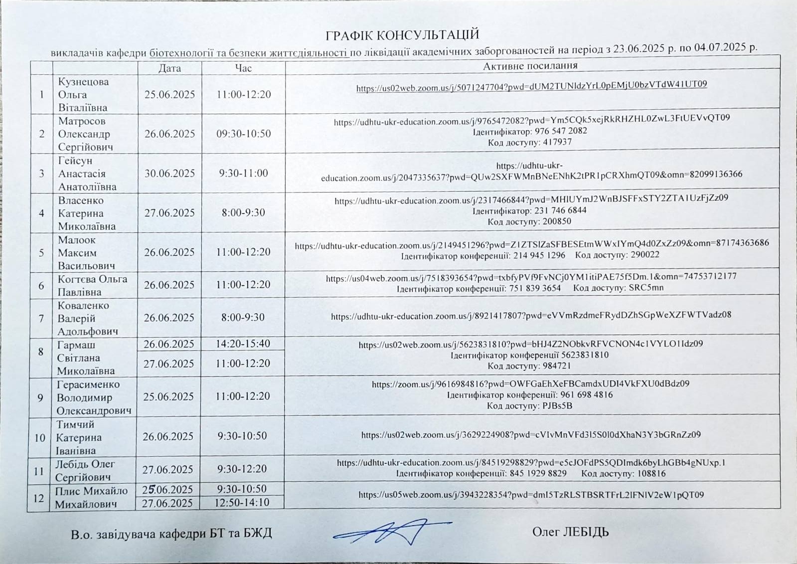 КАФЕДРА БІОТЕХНОЛОГІЇ ТА БЕЗПЕКИ ЖИТТЄДІЯЛЬНОСТІ