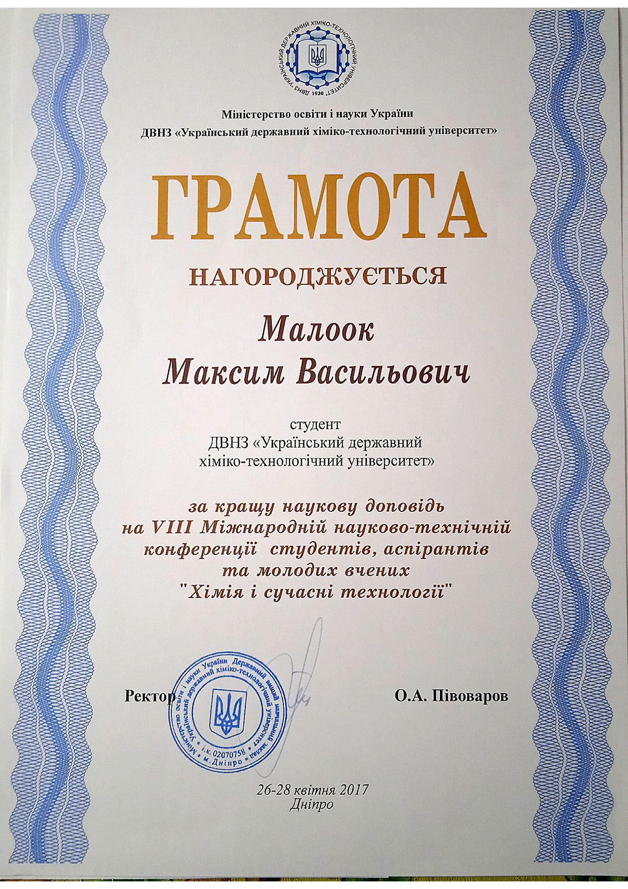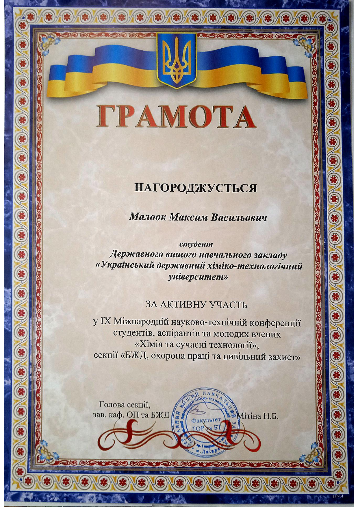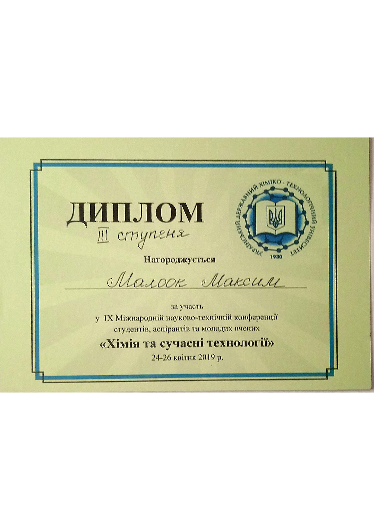 Науковий ступінь: кандидат технічних наук за спеціальністю 05.17.01 – технологія неорганічних речовин