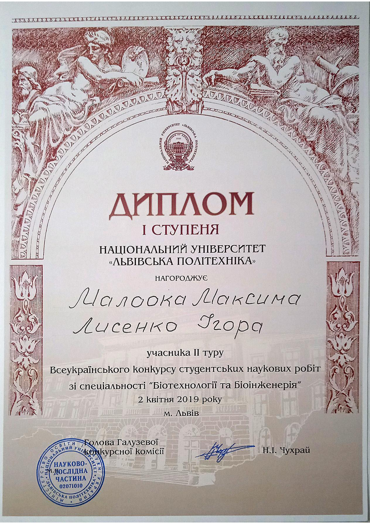 Публікації: 20 наукових публікацій, 2 патенти на винахід