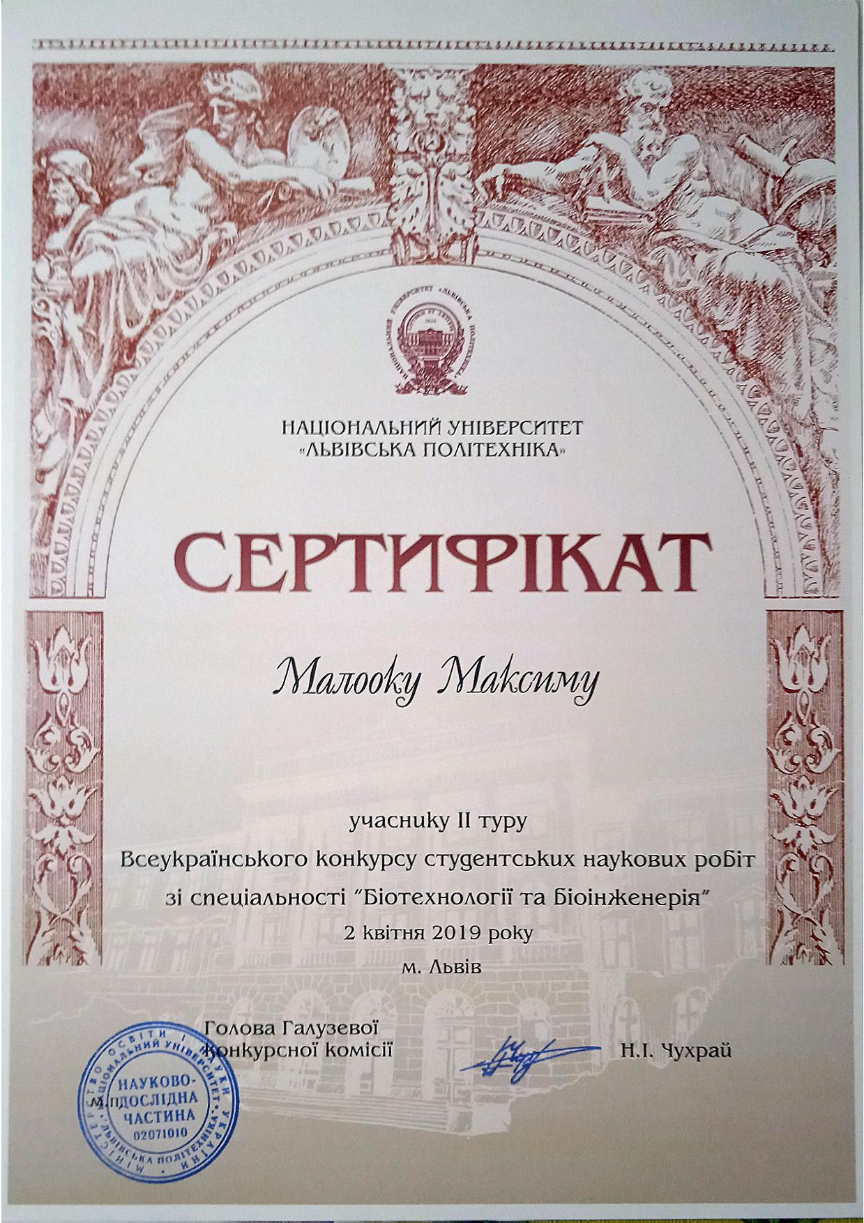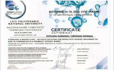 Учасник міжнародного наукового проекту: SWorld (Україна, Болгарія, Німеччина, Білорусь та ін.). – CERTIFICATE 21120001, December 03, 2021.