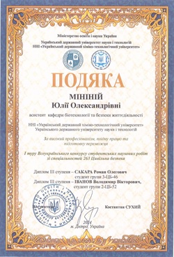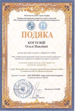 Під керівництвом Кузнецової О.В. захищено дисертацію рівня PhD за спеціальністю 162 «Біотехнології та біоінженерія».