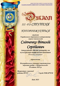 Захистила дисертацію за темою «Біотехнологічні засади підвищення інтенсивності аромату грибів роду Pleurotus у процесі їх твердофазного культивування».