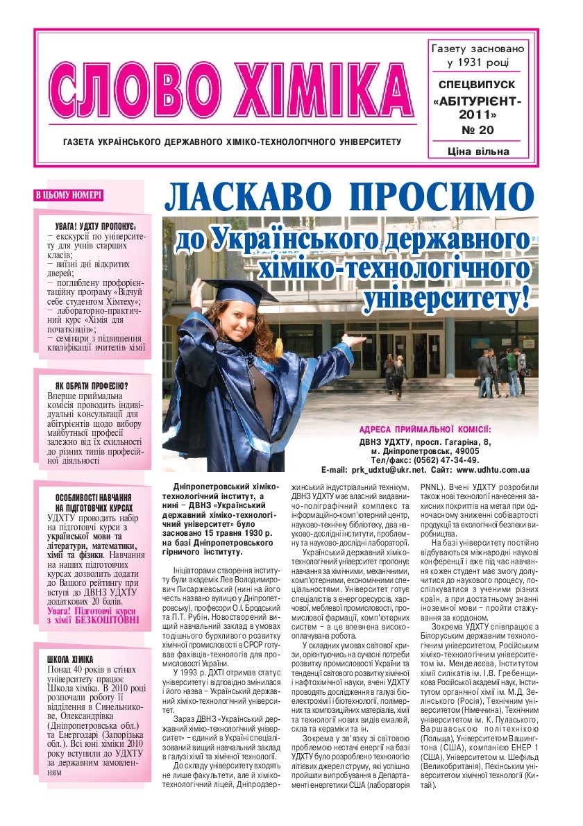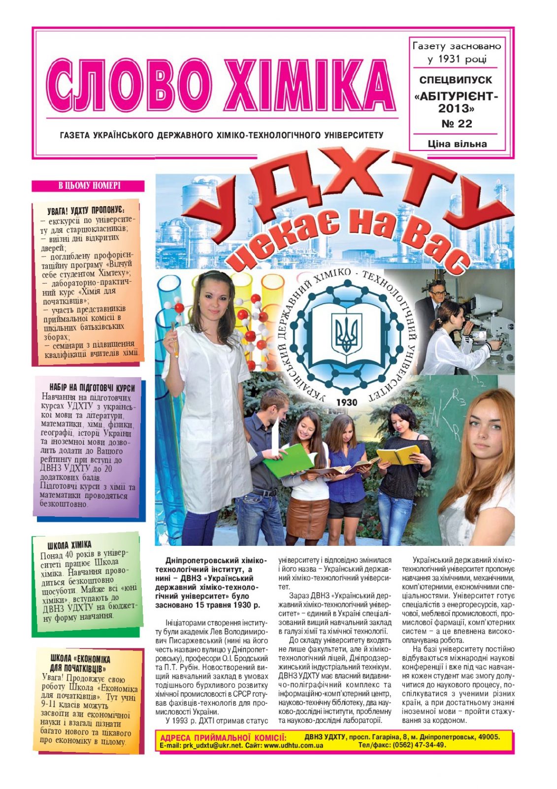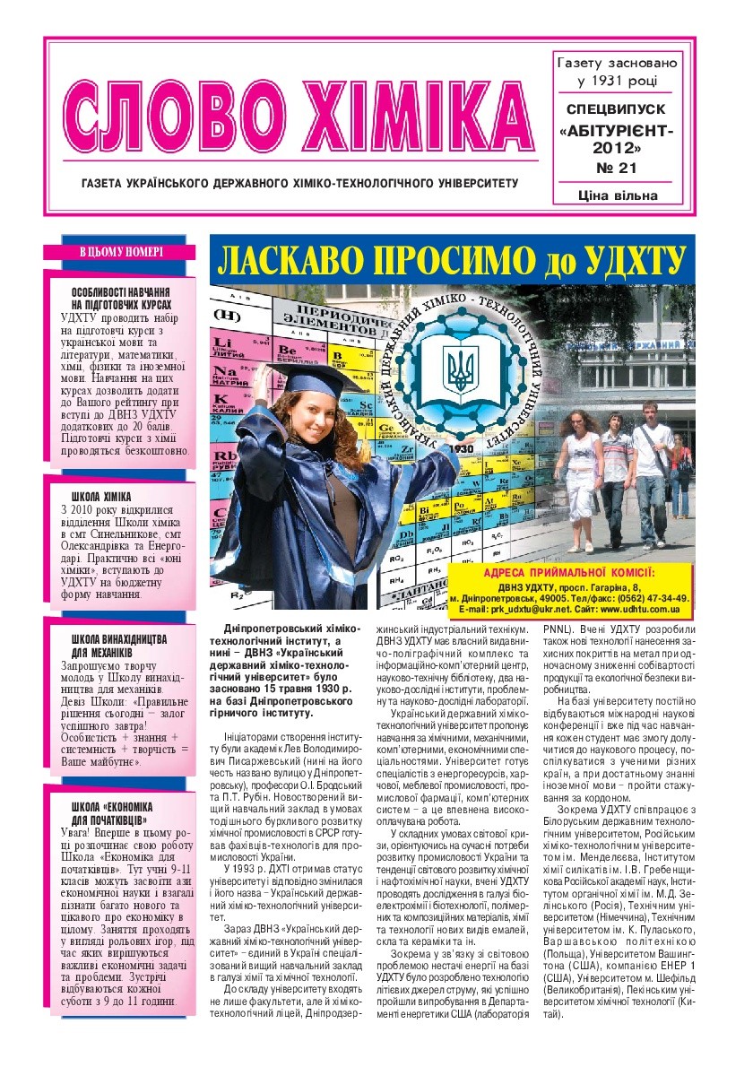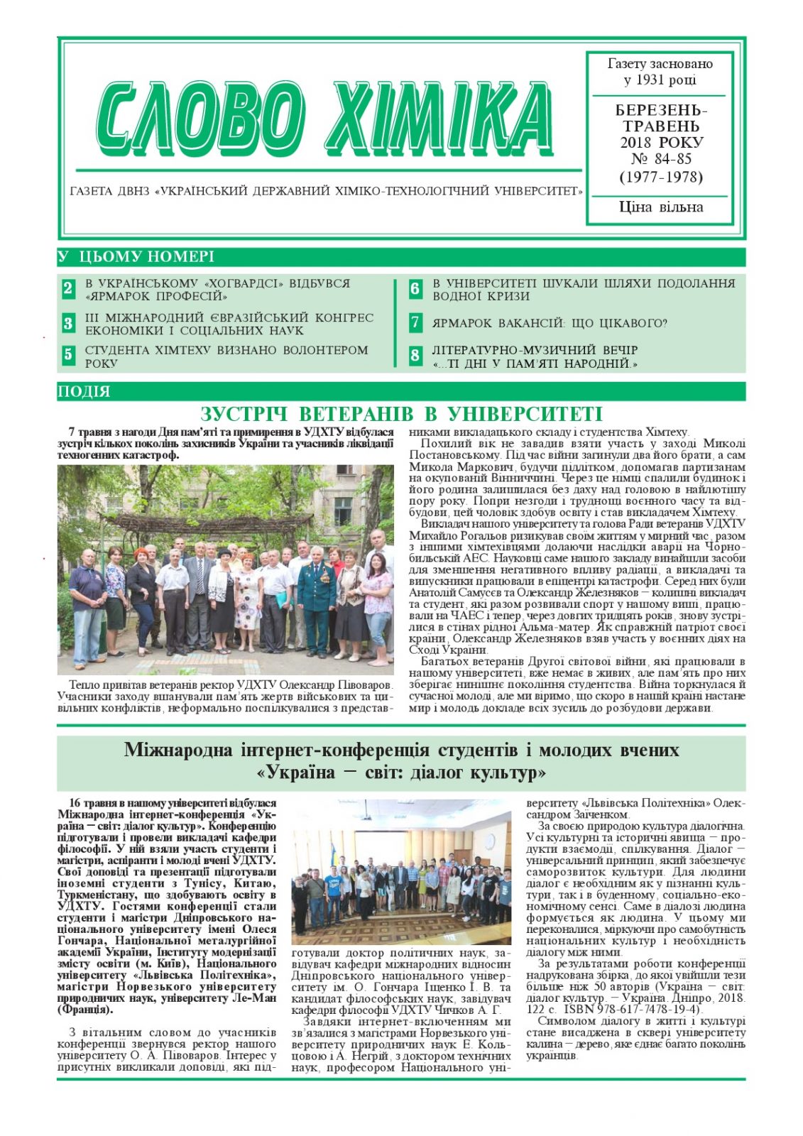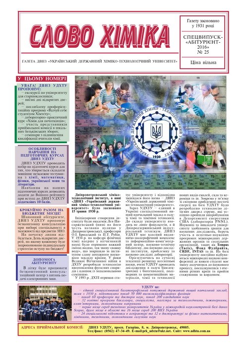 Газету «Слово хіміка» ДВНЗ «Український державний хіміко-технологічний університет» засновано у 1931 році. За час її існування видано понад 1900 номерів.
