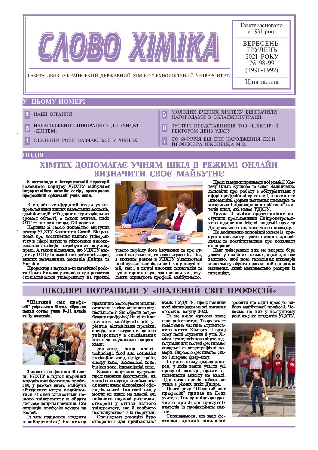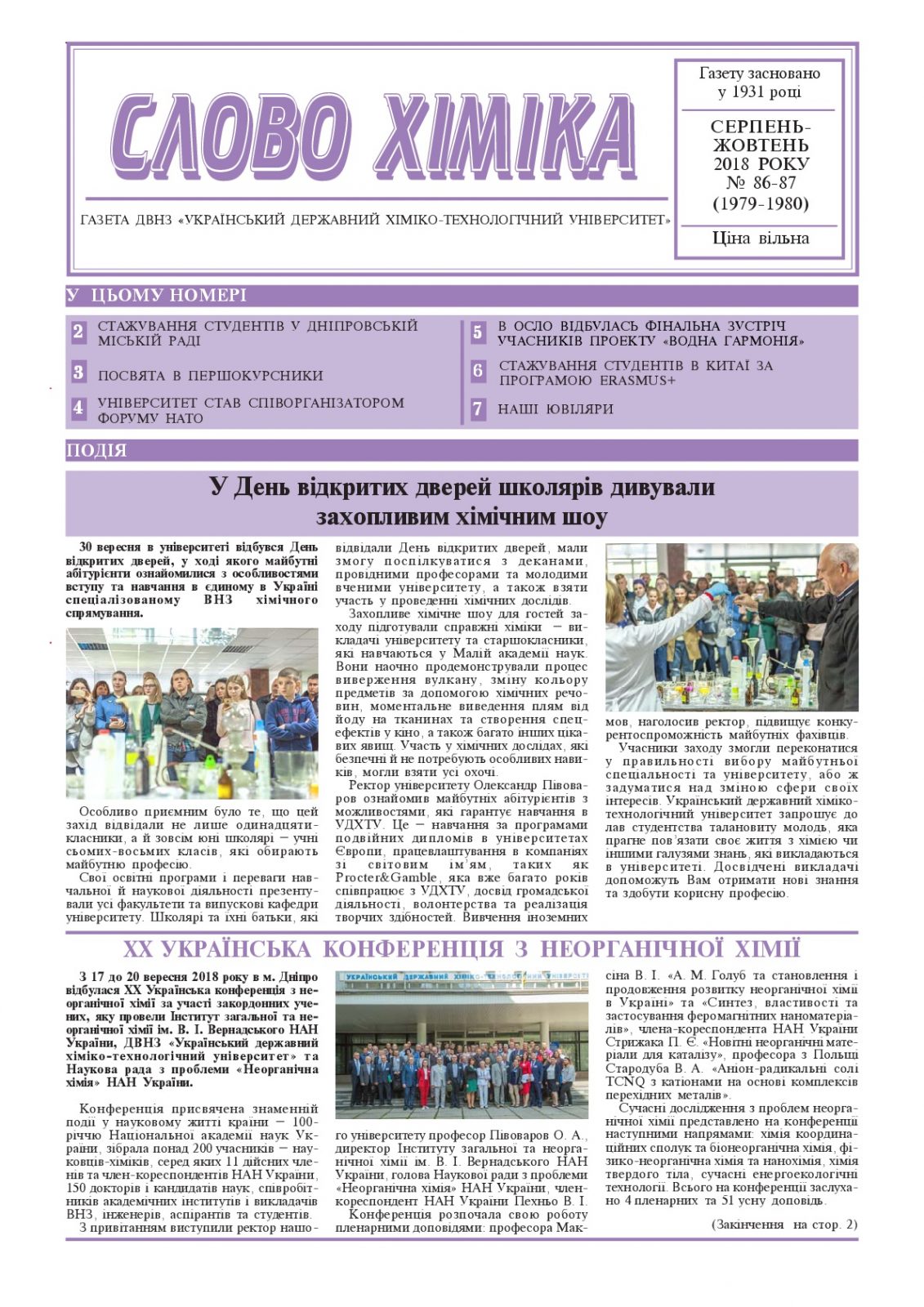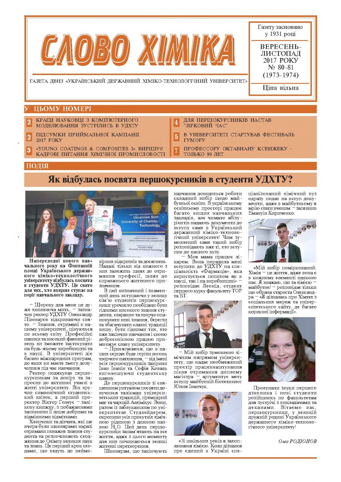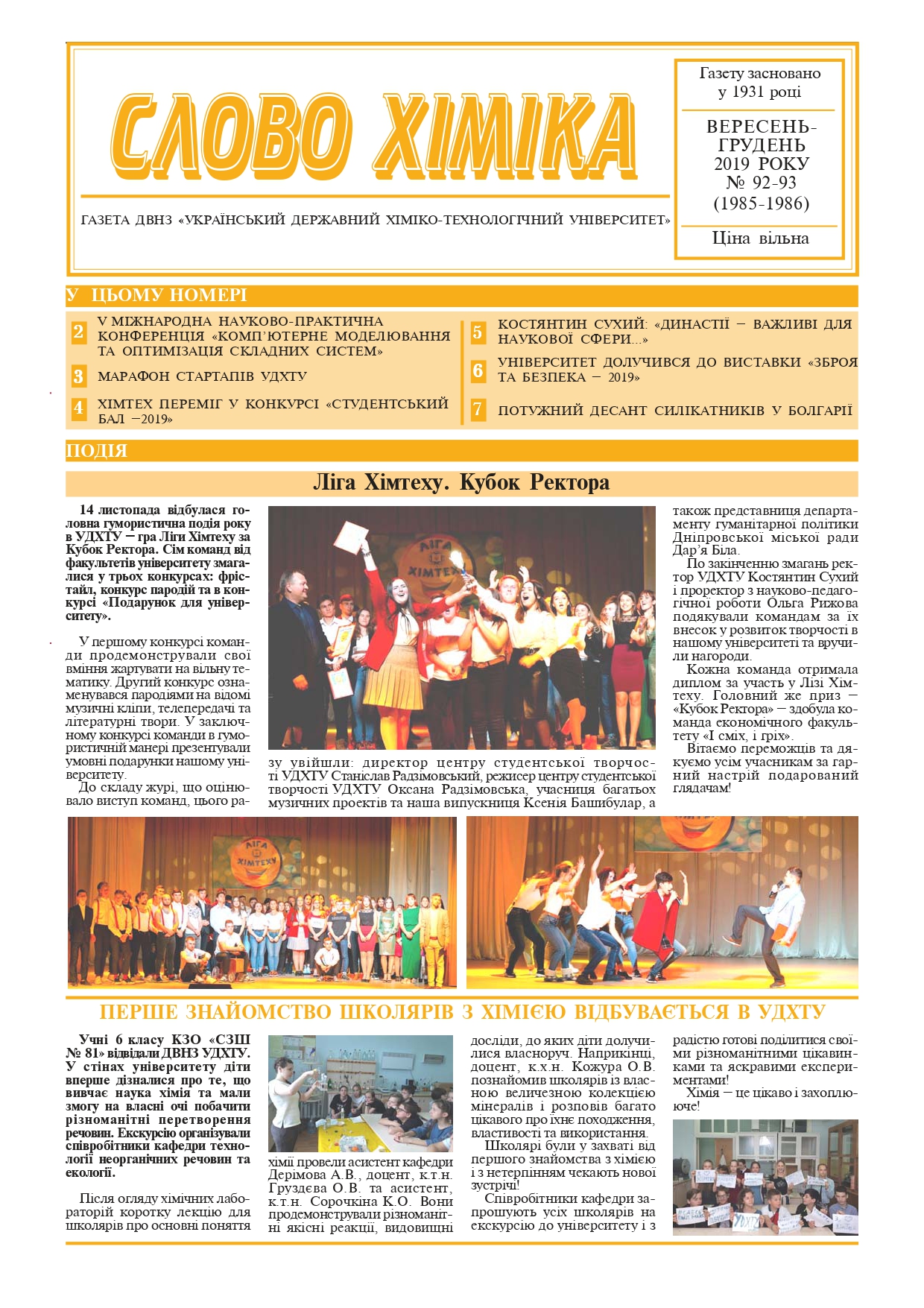 Газету «Слово хіміка» ДВНЗ «Український державний хіміко-технологічний університет» засновано у 1931 році. За час її існування видано понад 1900 номерів.
