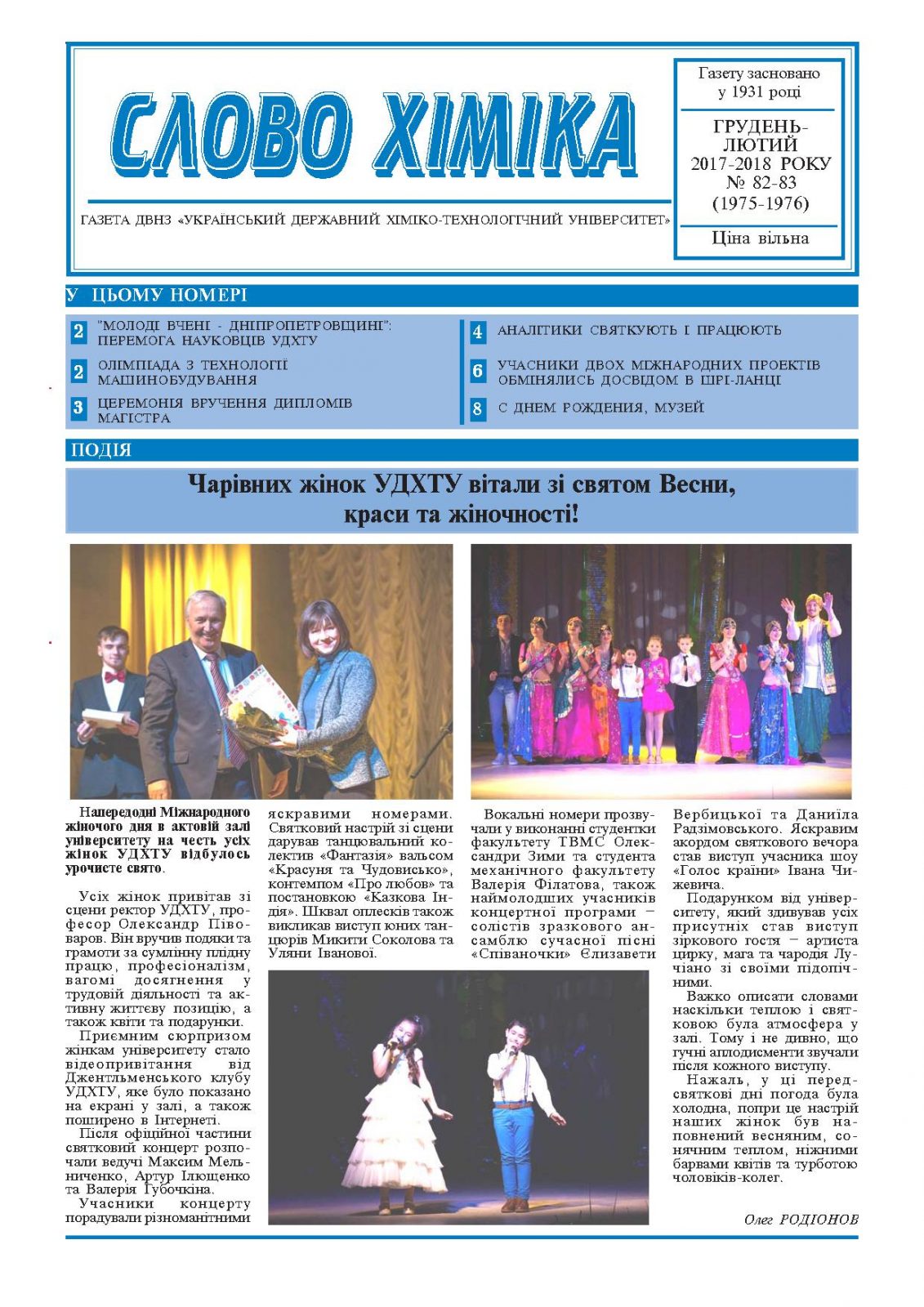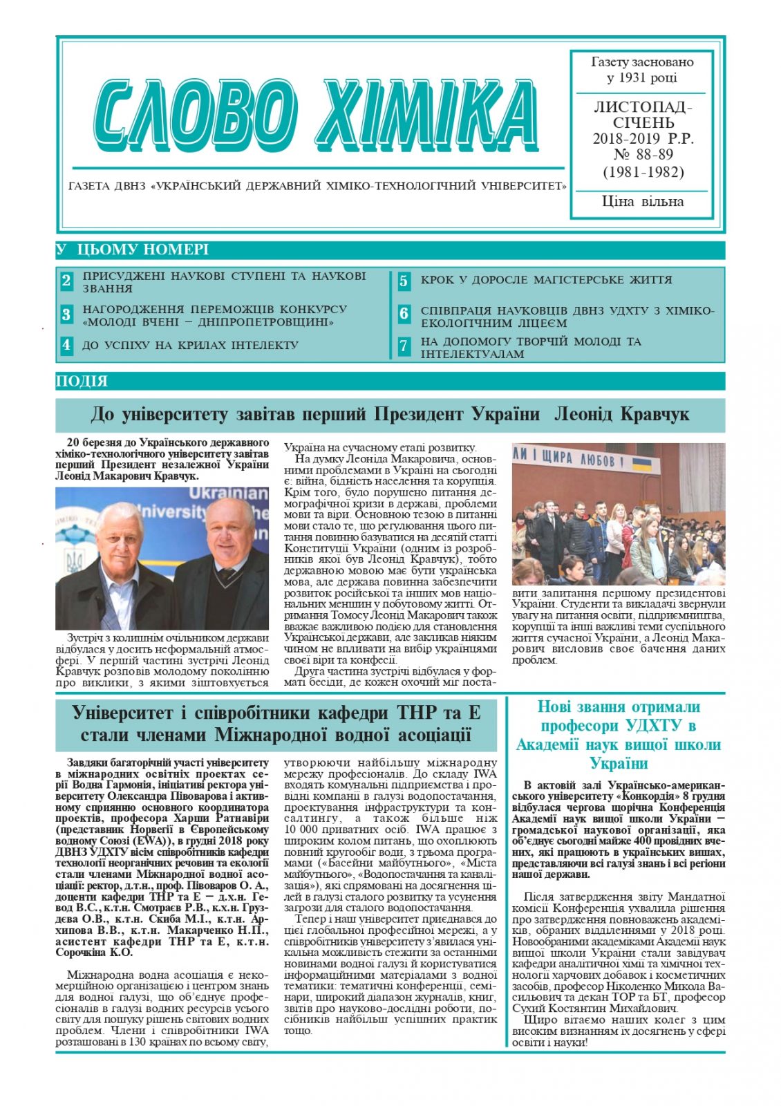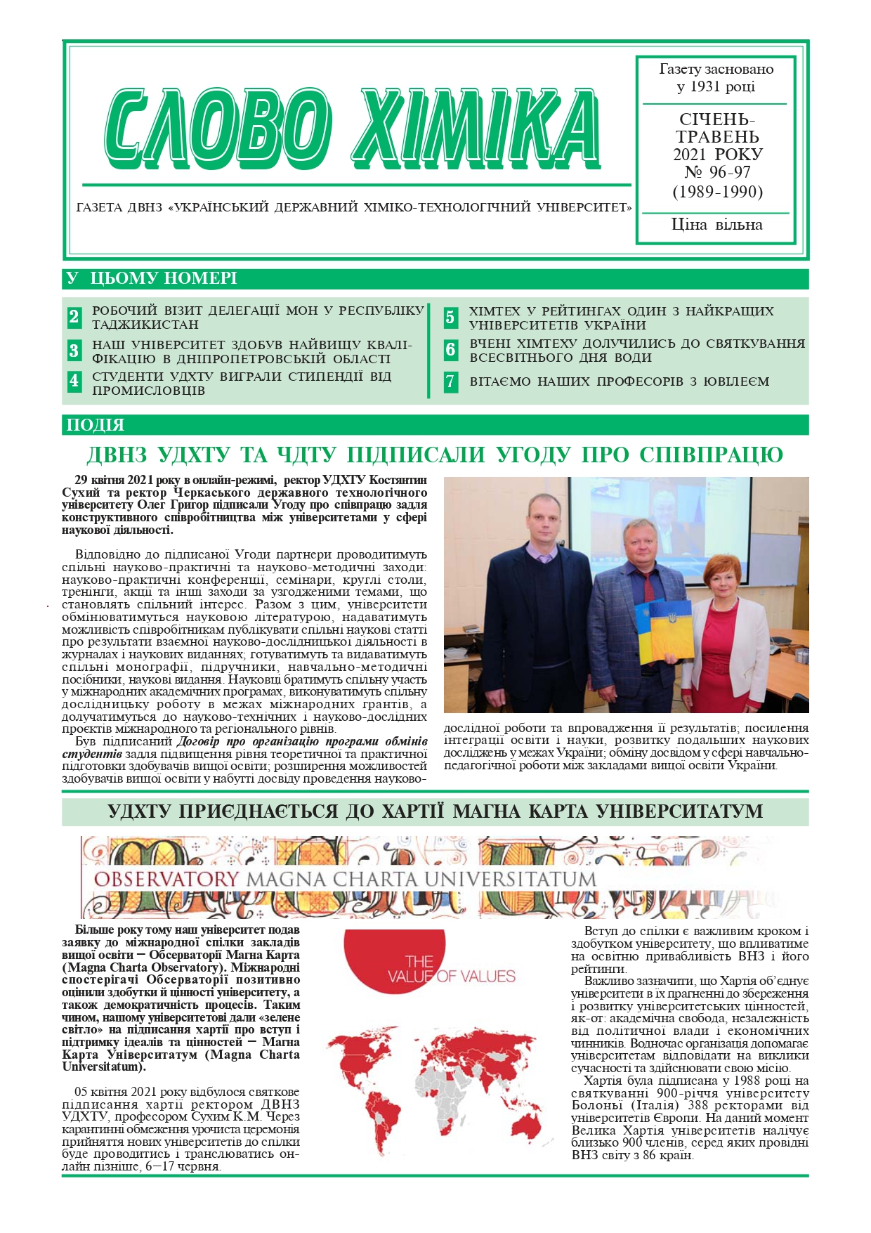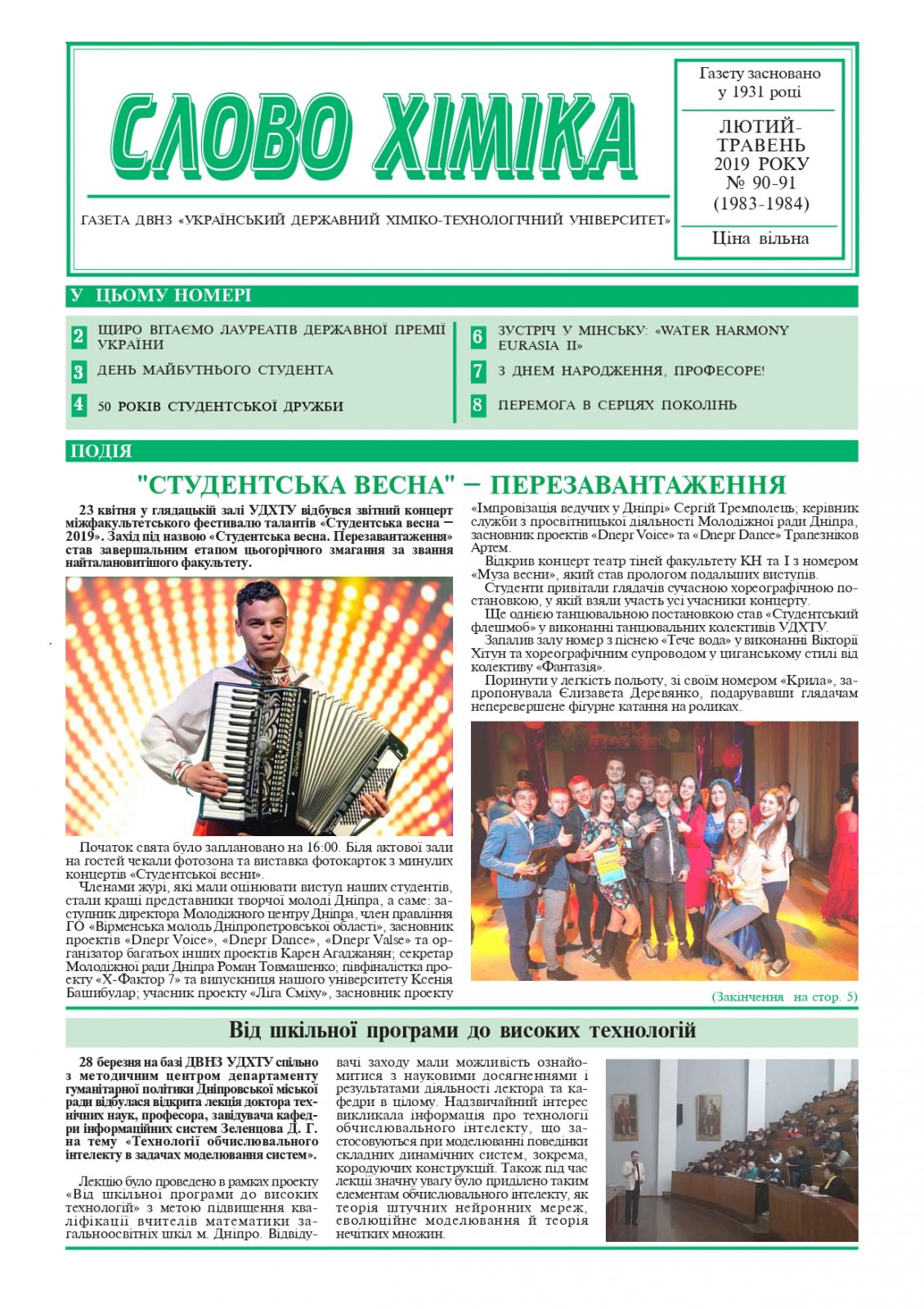 Газету «Слово хіміка» ДВНЗ «Український державний хіміко-технологічний університет» засновано у 1931 році. За час її існування видано понад 1900 номерів.