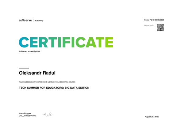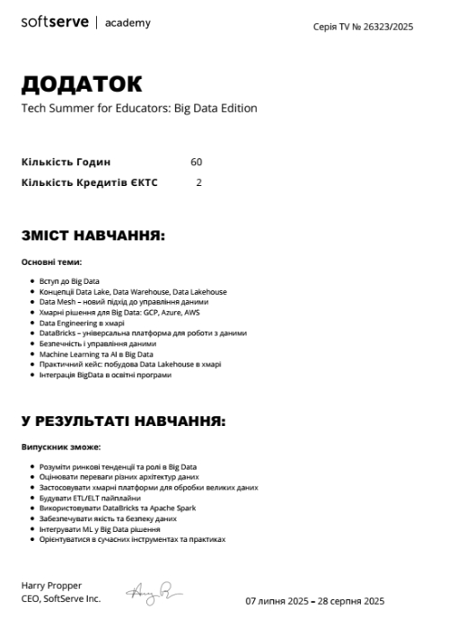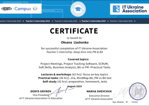 - ознайомлюватися з новітніми технологіями та практиками у сфері штучного інтелекту, проєктного менеджменту, хмарних обчислень, аналізу великих даних тощо;
