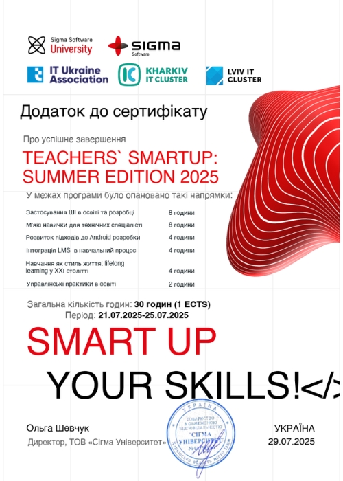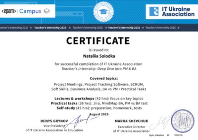 Влітку 2025 року викладачі кафедри інформаційних систем проходили індивідуальні стажування, зокрема від фахівців компаній-партнерів кафедри: ЕРАМ, SoftServe, Sigma Software.