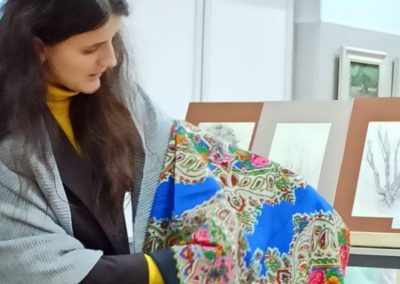 07 грудня 2023 року в Арт-просторі УДХТУ пройшов інтерактивний захід “Речі Бабусиної скрині: хустка як різновид головних уборів українок”. Його підготувала науковий співробітник Дніпровського національного історичного музею ім. Д. І. Яворницького Наталія Лисовець.