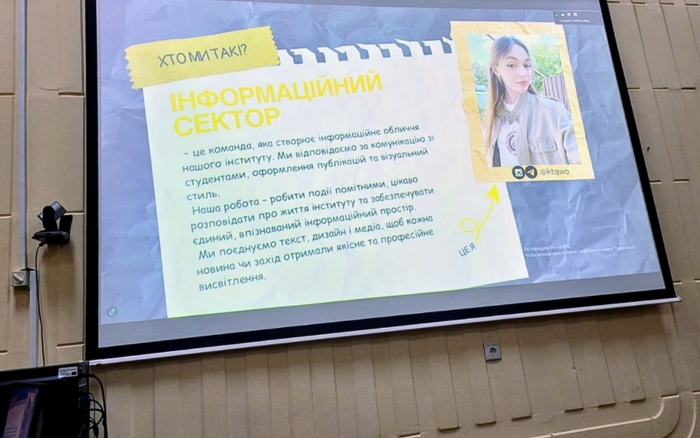 - Інформаційний сектор – створення фото- й відеоматеріалів, ведення соцмереж та висвітлення подій інституту.