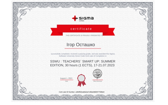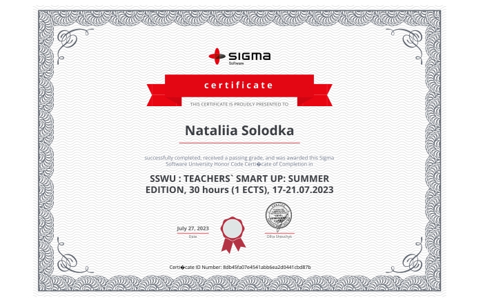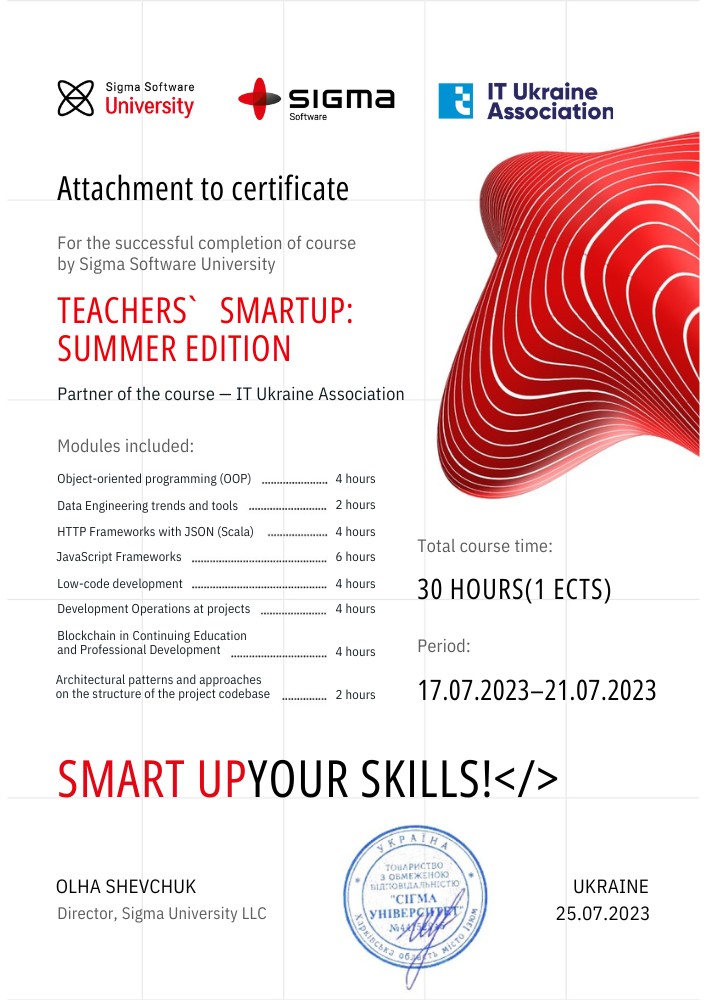 Курс Teachers Smart Up: Summer Edition 2023 від Sigma Software як індивідуальне стажування