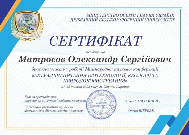 27–28 квітня 2023 року на базі факультету біотехнологій Державного біотехнологічного університету відбулася Міжнародна наукова конференція «Актуальні питання біотехнології, екології та природокористування».