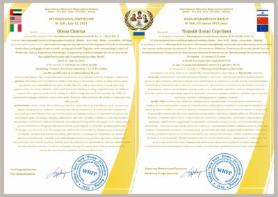 The International Historical Biographical Institute (Dubai – New York – Rome – Jerusalem – Beijing) проводив для керівників закладів освіти і науки, вихователів дошкільних закладів, методистів, вчителів та науково-педагогічних працівників I Міжнародну програму підвищення кваліфікації керівників закладів освіти і науки, а також педагогічних та науково-педагогічних працівників “Нобелівський Курс: Нові Знання, Ідеї, Досвід, Цінності, Компетентності“. Вона фінансувалася за рахунок міжнародного гранту в еквіваленті EUR 1 200 000, наданого IHBI за фінансової підтримки ОАЕ, Італії, США, Ізраїлю та Китаю, а також залучення благодійних внесків.