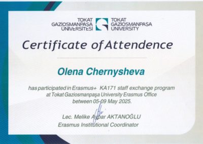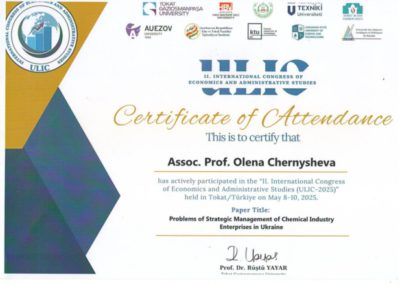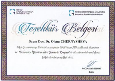 За підтримку та участь в Організаційному комітеті конгресу доц. Оленою ЧЕРНИШЕВОЮ отримано подяку від ректора Токатського університету Газіосманпаші проф. Фатіха ЙІЛМАЗА.