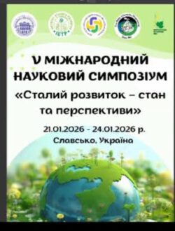 22 січня 2026 року викладачі кафедри біотехнології та безпеки життєдіяльності взяли участь у V Міжнародному науковому симпозіумі «Сталий розвиток: стан та перспективи», який проходив на базі Навчально-наукового інституту сталого розвитку імені В’ячеслава Чорновола Національного університету «Львівська політехніка».