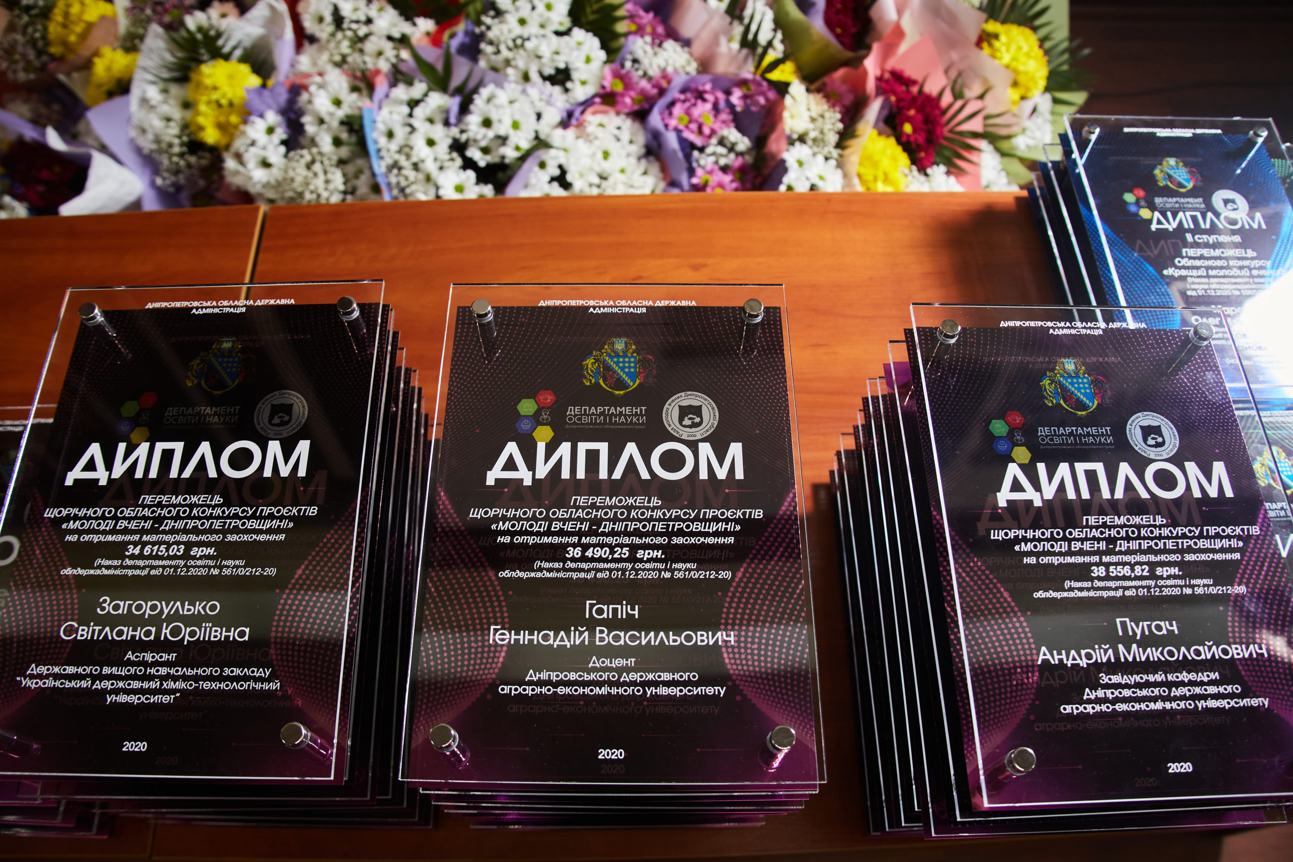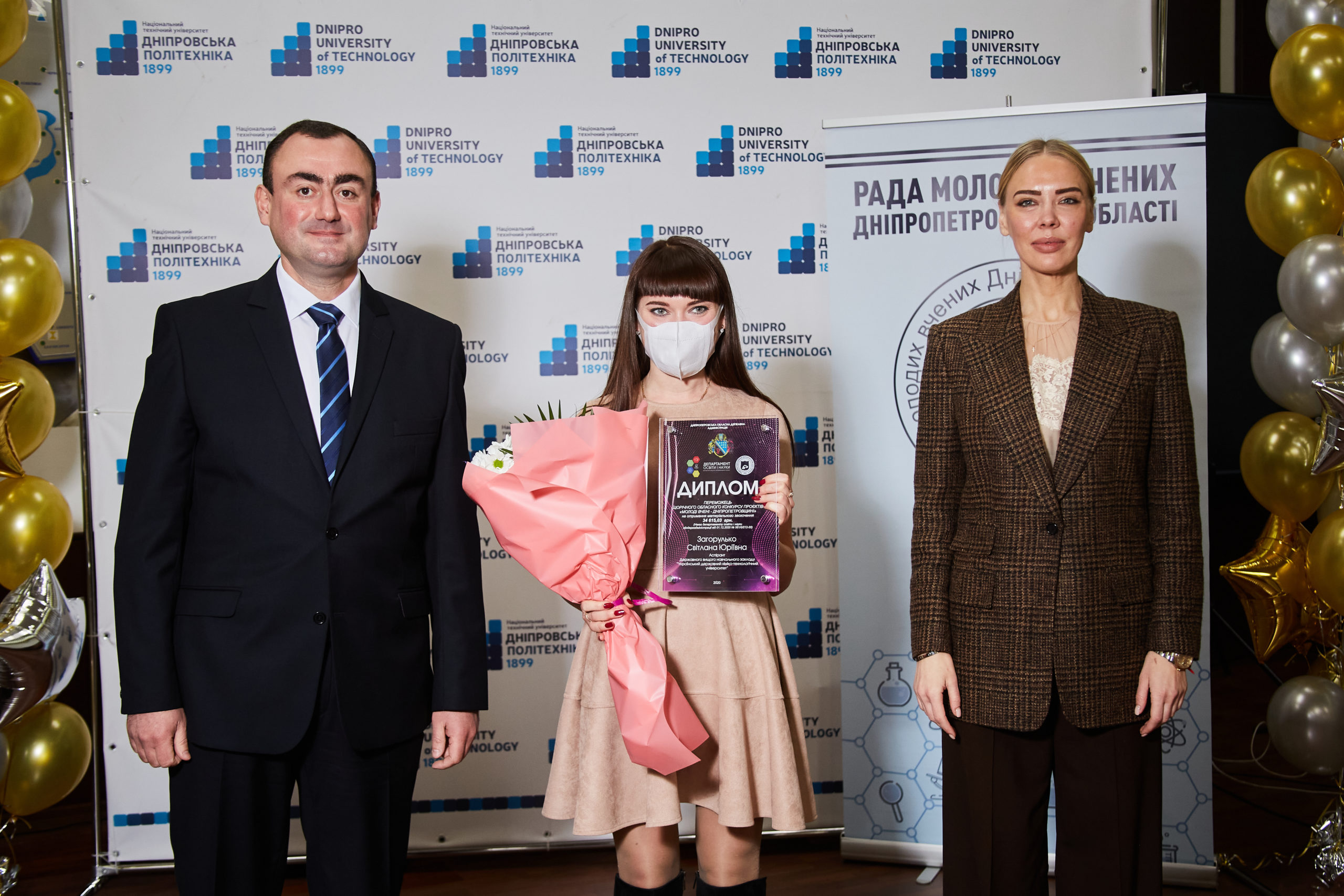 18 грудня 2020 року за участі заступника голови Дніпропетровської облдержадміністрації Грицай Ірини Олегівни, директора департаменту освіти і науки ДніпроОДА Полторацького Олексія Володимировича та інших поважних осіб відбулося урочисте нагородження переможців щорічних обласних конкурсів для молодих вчених, які проводяться за підтримки спільно Ради молодих вчених Дніпропетровської області та Департаменту освіти та науки ДніпроОДА.