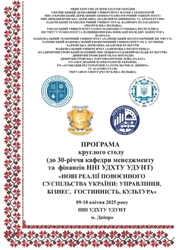 9–10 квітня 2025 року ННІ “Український державний хіміко-технологічний університет” УДУНТ став платформою для проведення міждисциплінарного круглого столу «Нові реалії повоєнного суспільства України: управління, бізнес, гостинність, культура». Захід було організовано з нагоди 30-річчя кафедри менеджменту та фінансів факультету економіко-гуманітарних наук та права, що стало визначною подією для університетської спільноти.