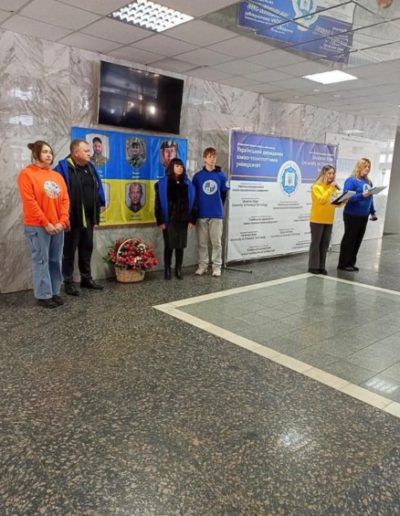На завершення заходу учасники поклали квіти до прапора пам’яті, присвяченого студентам, випускникам, рідним викладачів та співробітників ННІ УДХТУ, які загинули, захищаючи Україну.