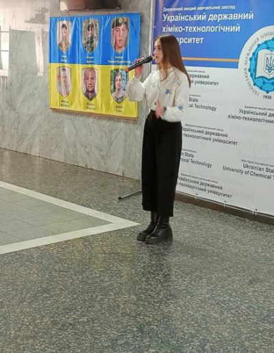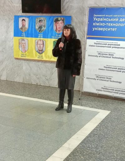 До присутніх також звернулася в.о. директора ННІ УДХТУ, доктор хімічних наук, професор Ольга Свердліковська. Вона наголосила, що кожен українець сьогодні наближає перемогу своїми вчинками – на передовій, у тилу, у своїй країні та за її межами. Вона подякувала військовим за можливість жити, навчатися, працювати та разом будувати майбутнє.