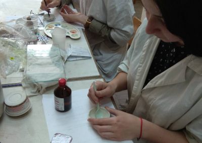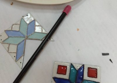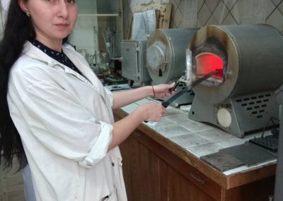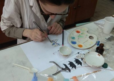 На наступному етапі роботи студенти використовували знання, отримані при вивченні спеціальних дисциплін на кафедрі ХТКС. Керівником дослідницьких дипломних робіт були доценти кафедри, кандидати технічних наук Рижова Ольга Петрівна та Кольцова Ярослава Іванівна, а консультантами – доценти Науменко С. Ю. та Нагорна Т. І. Ювелірні вироби виготовлені в техніці перегородчаcтої емалі та художнього розпису. Найскладнішим був етап вибору складів емалей і полив, їхнє виготовлення й отримання покриттів і самих виробів.
