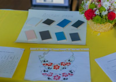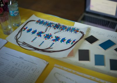 Консультантами під час роботи над ескізами і вибору кольорів були викладач кафедри дизайну та архітектури Придніпровської державної академії будівництва та архітектури Куницька Яна Станіславівна і головний технолог ПАТ «Інтеркерама» Полянська Оксана Станіславівна. В основу малюнка ювелірних виробів обрано традиційний український орнамент, який характеризується гамою кольорів – червоний, чорний, синій та «морської хвилі». У роботах кераміків розроблялася гама кольорів для полив (сірого, рожевого та блакитного).