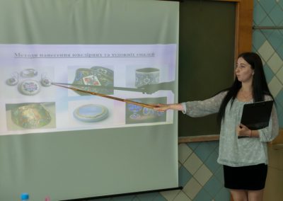 19 червня 2018 року на кафедрі хімічної технології кераміки та скла УДХТУ відбувся захист дипломних робіт першого випуску студентів-дизайнерів спеціальностей «Технологія кераміки» та «Технологія емалі». Метою дипломних робіт була розробка художнього ескізу та складів емалей або глазурей для отримання ювелірних виробів з міді та декоративних покриттів на керамічній плитці.