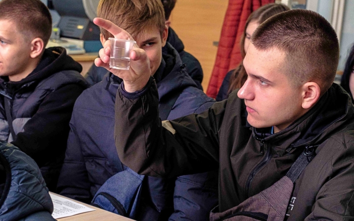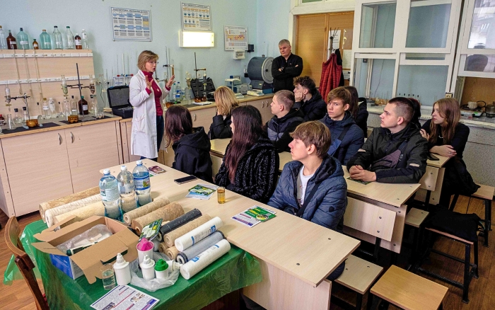 Захід складався з двох частин: практичної лабораторної роботи та виїзної екскурсії на пивоварню “MOVA”, де учні змогли побачити застосування технологій водопідготовки у реальному виробництві.